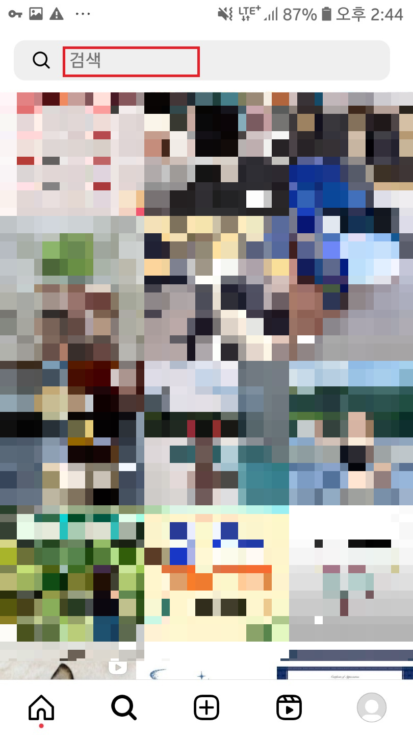 하단 메뉴중 두번째 돋보기 아이콘을 클릭해주시고, 상단 검색창에 들어가셔서 계정을 검색해 찾아 클릭해줘요.