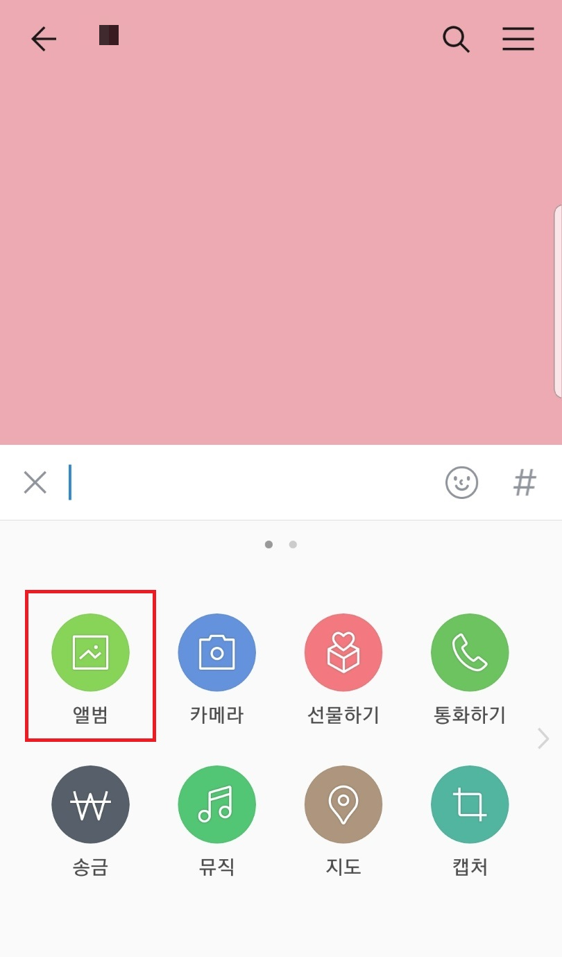 앨범을 누르면 바로 나오는 사진 목록에서 사진을 선택하신 후 전송을 클릭하셔서 전송을 해거나