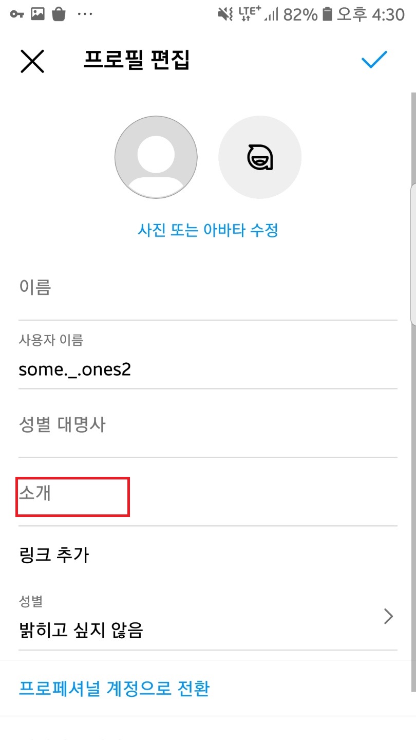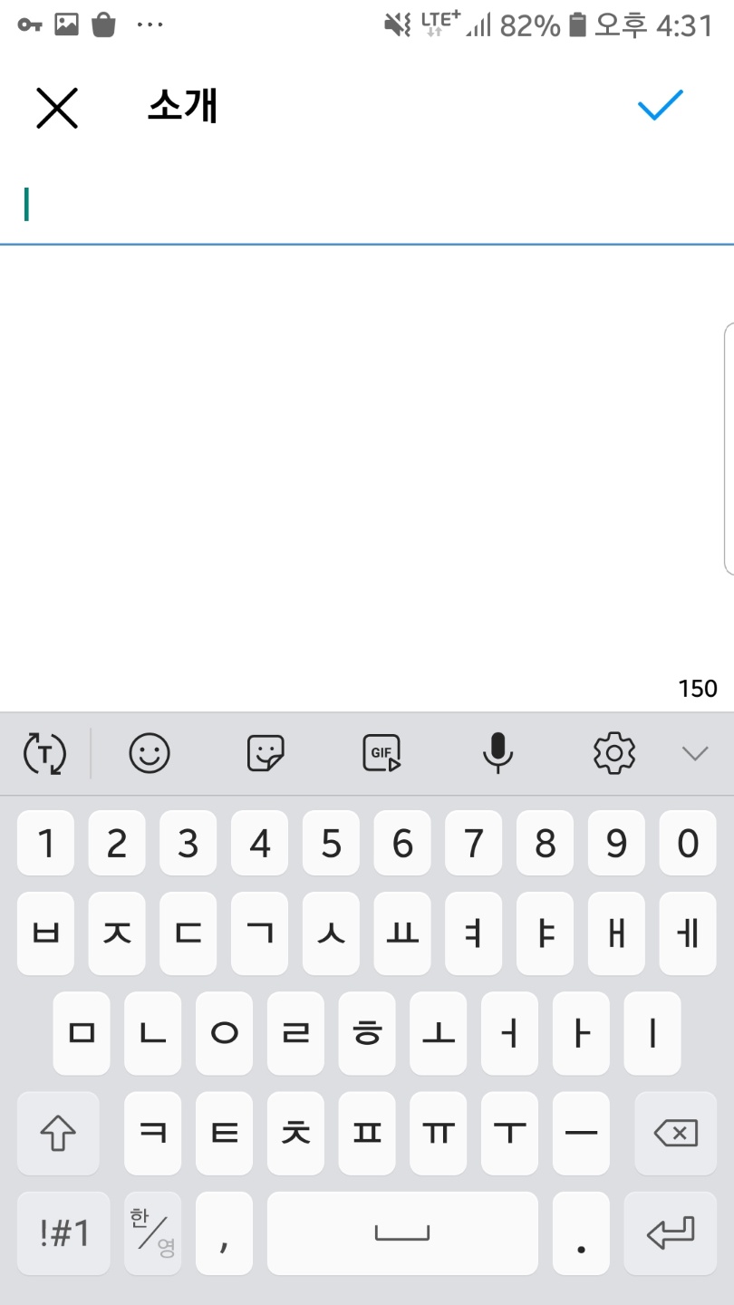 소개글을 작성하시고 우측 상단 체크표시를 눌러주세요.