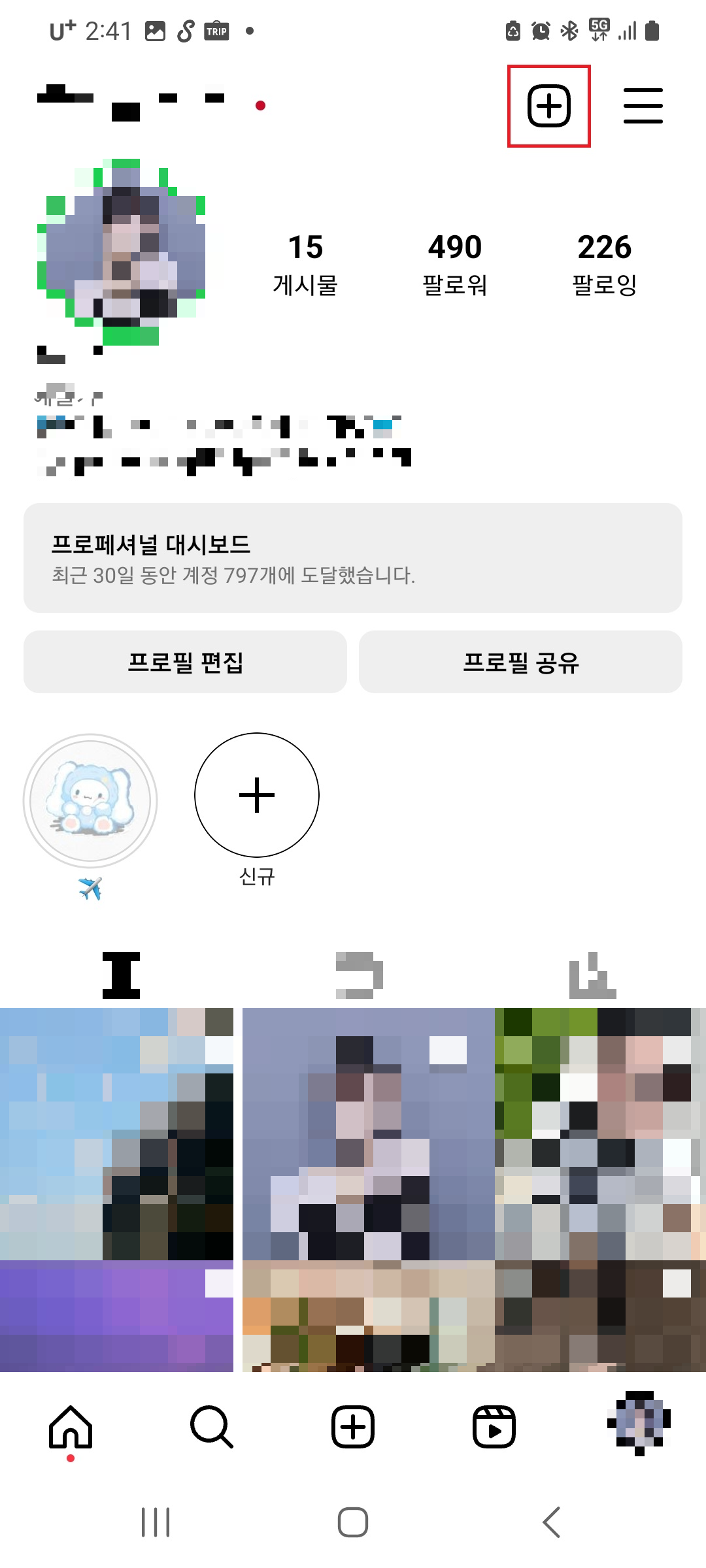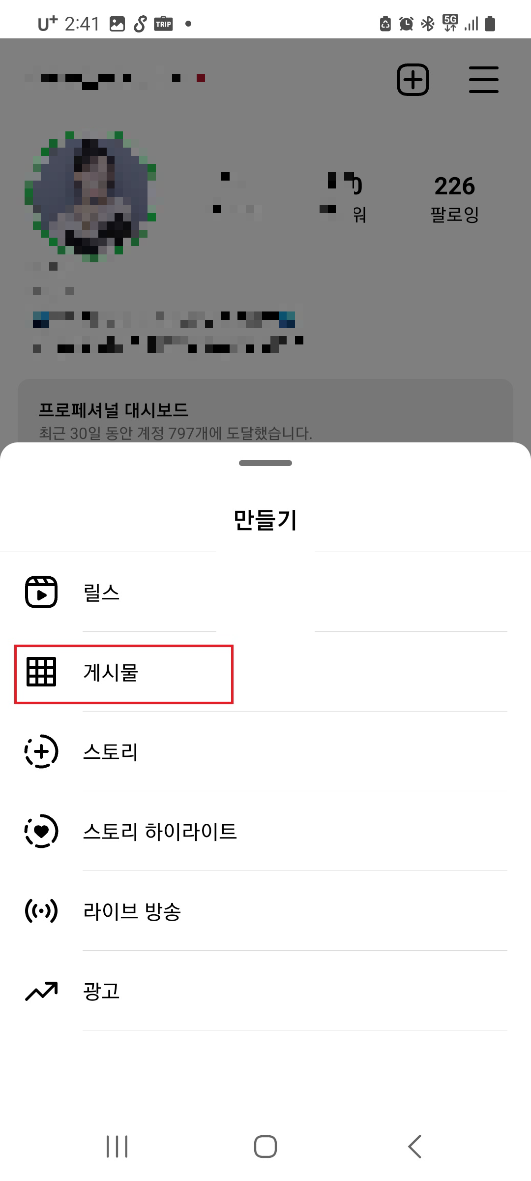 우측 상단 +아이콘을 클릭하시고 게시물에 들어가주세요.