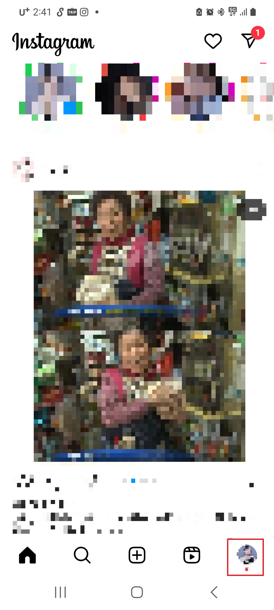 인스타 어플을 실행해주시고 우측 하단 프로필을 클릭해 내 피드로 들어가주세요.