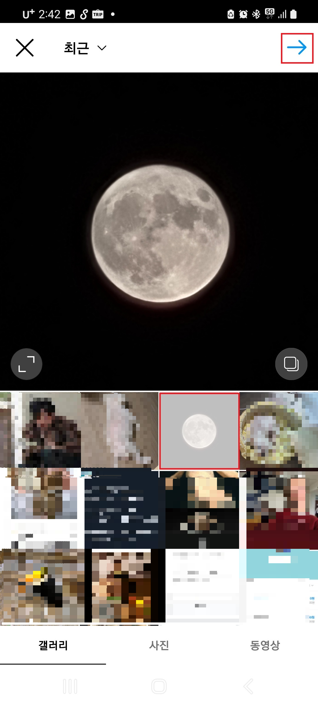 아래로 스크롤하여 사진을 선택해주시고, 우측 상단에 있는 우측 화살표를 클릭하시고, 한 번 더 우측 화살표를 눌러주세요.