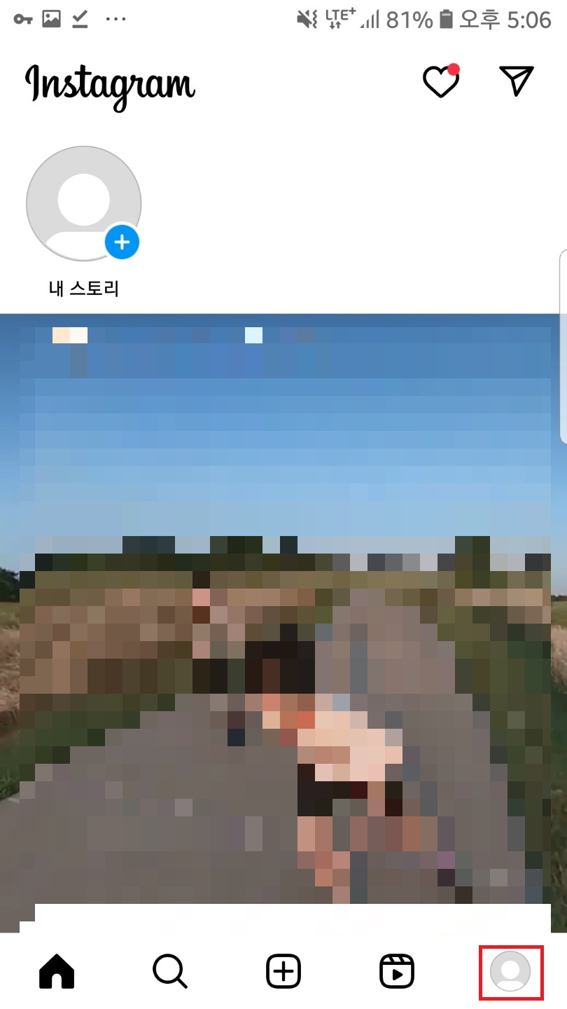 인스타 어플을 실행하시고 우측 하단 프로필을 클릭하여 내 피드로 들어가주세요.