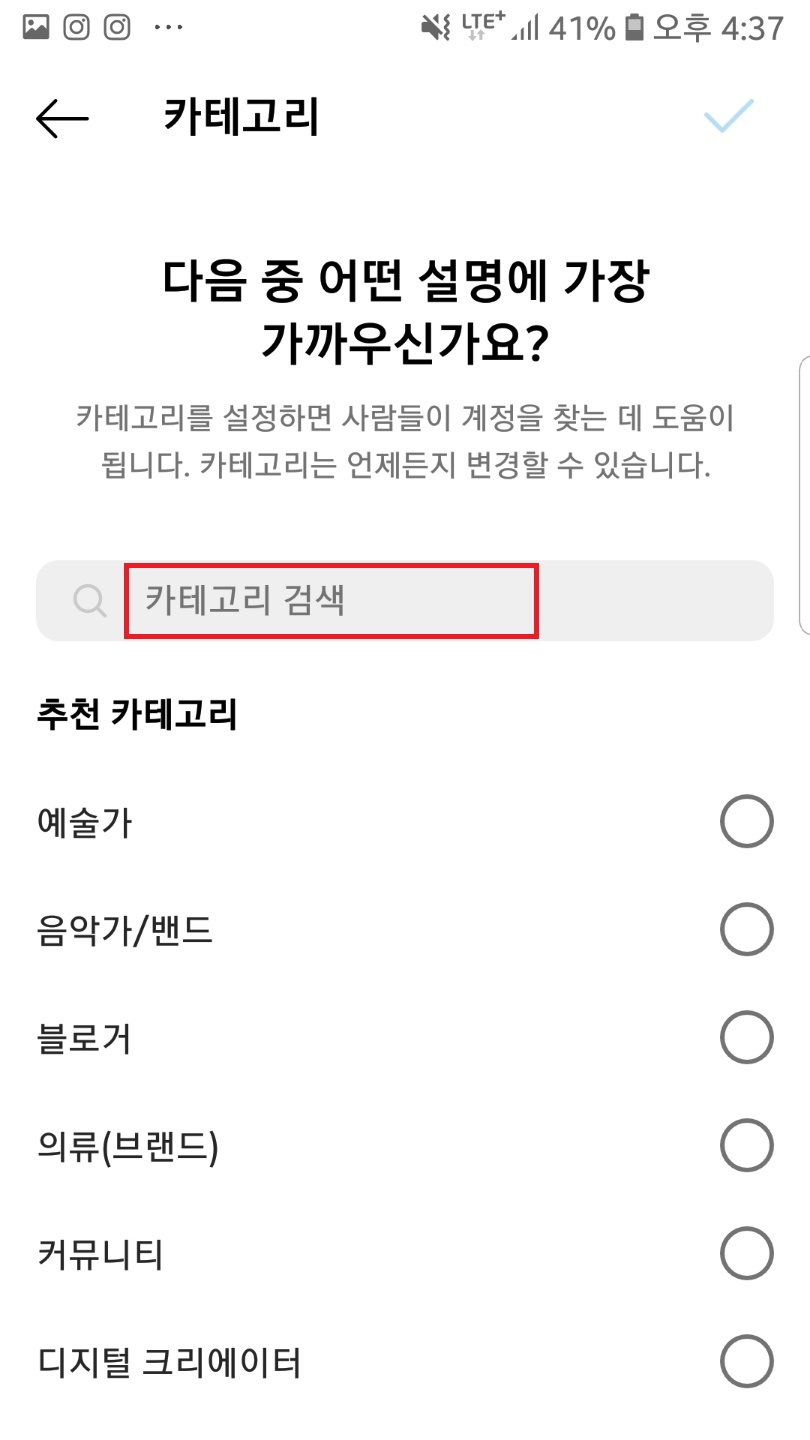 만약에 직업 추가를 했는데도 뜨지 않을 경우, 다시 프로필 편집을 눌러주시고, 아래로 스크롤 하여 카테고리에 들어가주세요.
