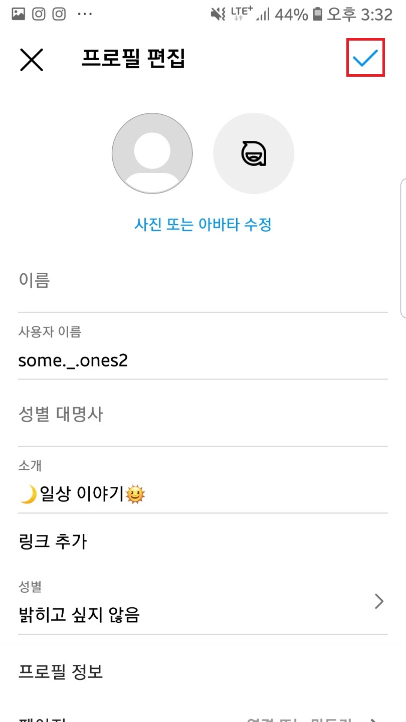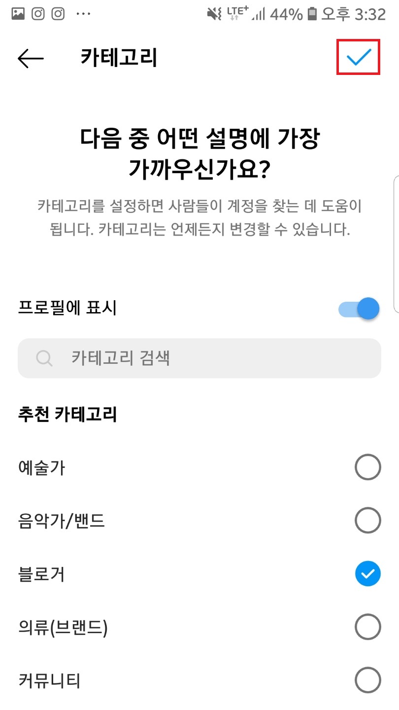 체크표시 누르시고 다시 내 피드로 돌아가보면 직업이 뜨는 게 보일 거예요!