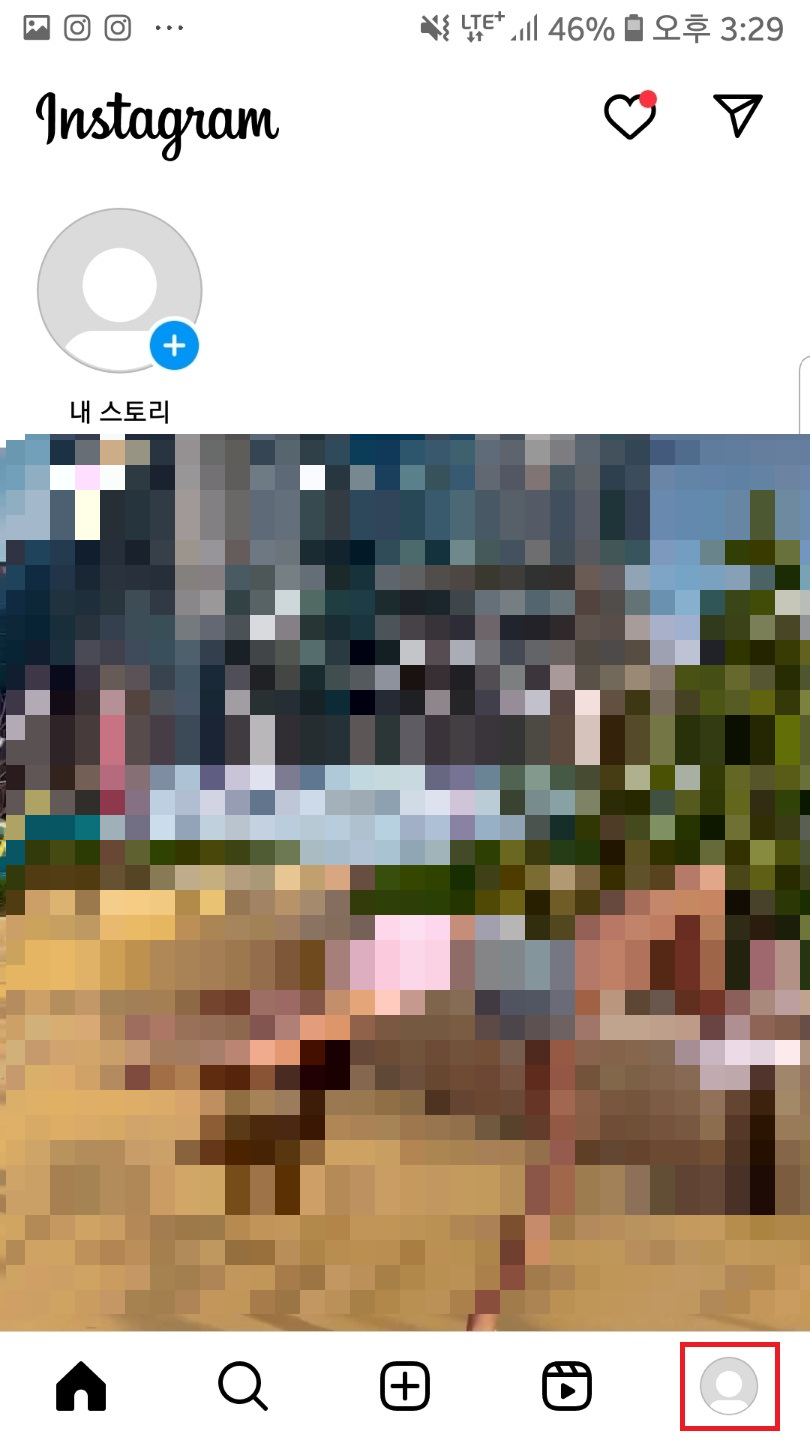 인스타 어플을 실행해주시고 우측 하단 프로필을 클릭해서 내 피드에 들어가주세요~