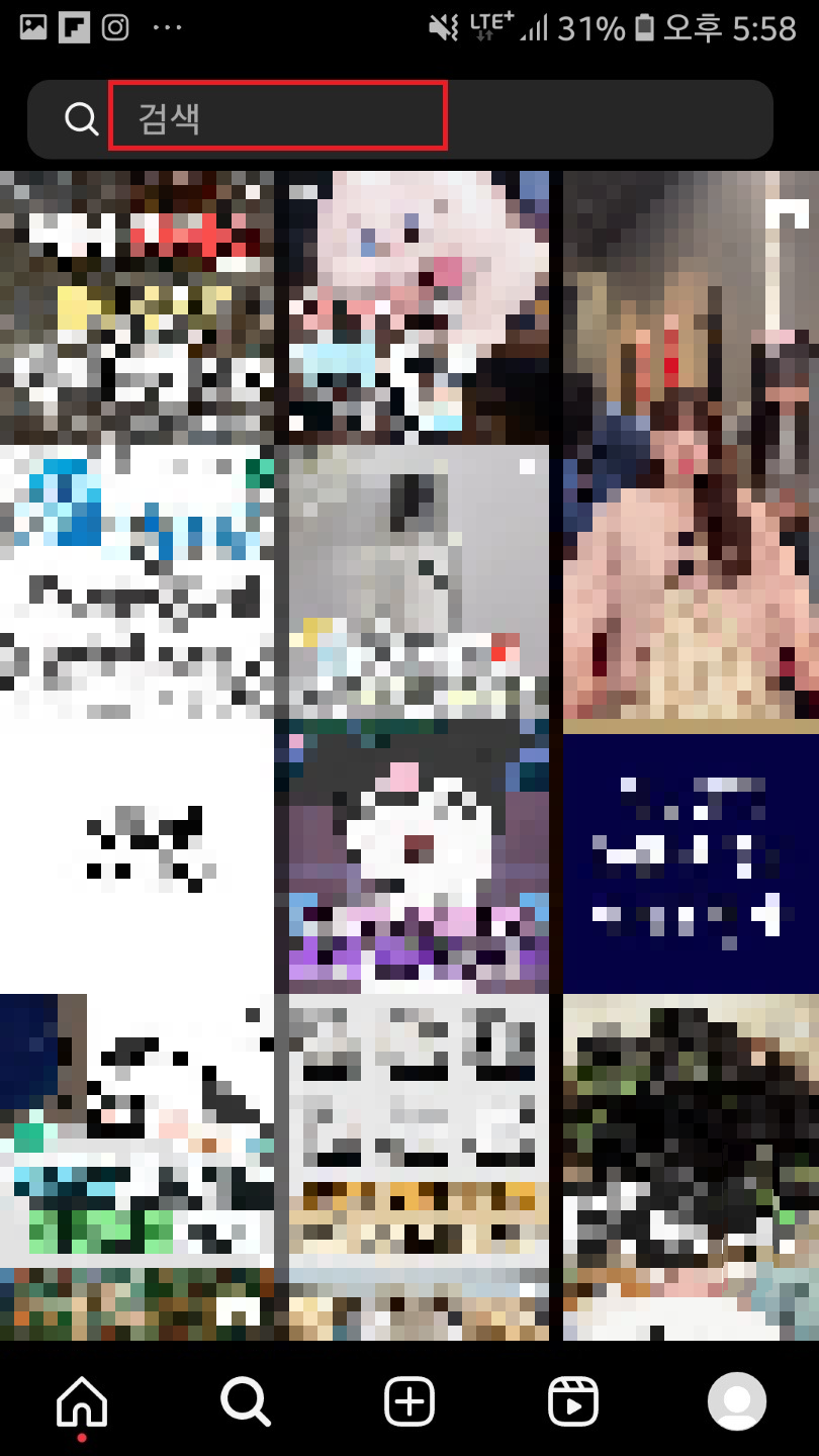 하단 메뉴 중 돋보기 아이콘을 눌러 검색탭을 열어주세요.