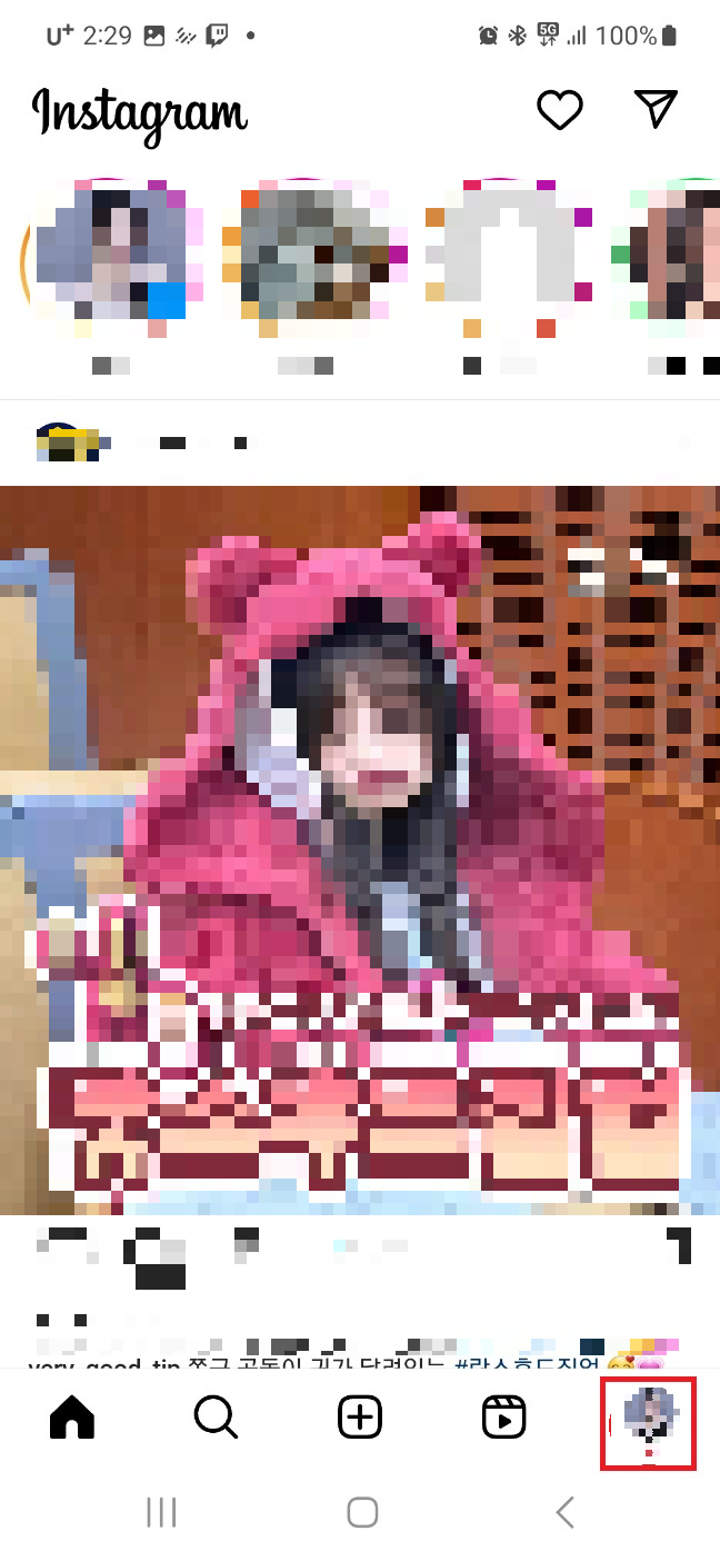 인스타 어플을 실행해주시고 우측 하단 프로필을 클릭해 내 피드에 들어가주세요.