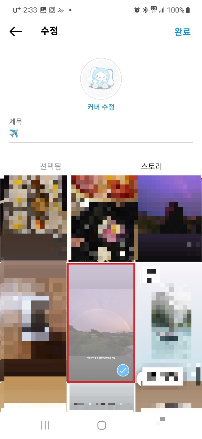 하이라이트 수정 ▶빼고싶은 스토리 선택 ▶완료