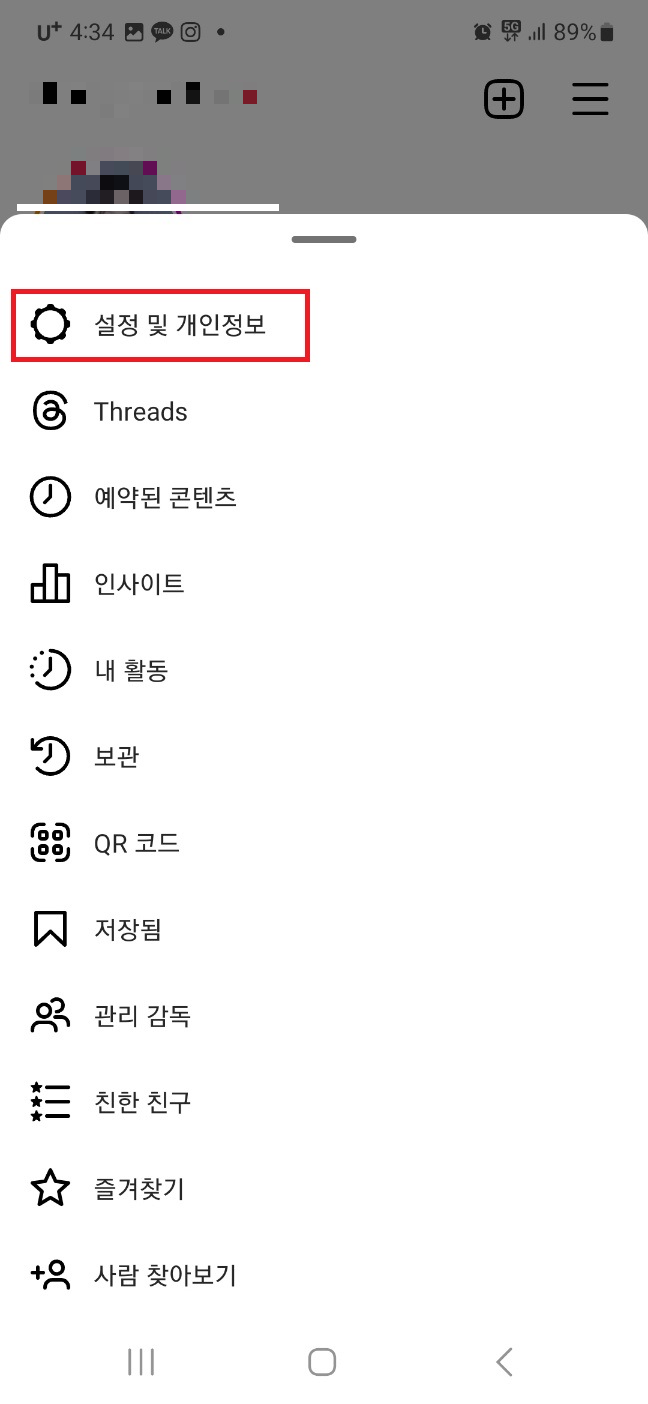 우측 상단 선 세개를 클릭하고 설정 및 개인정보에 들어가주세요.