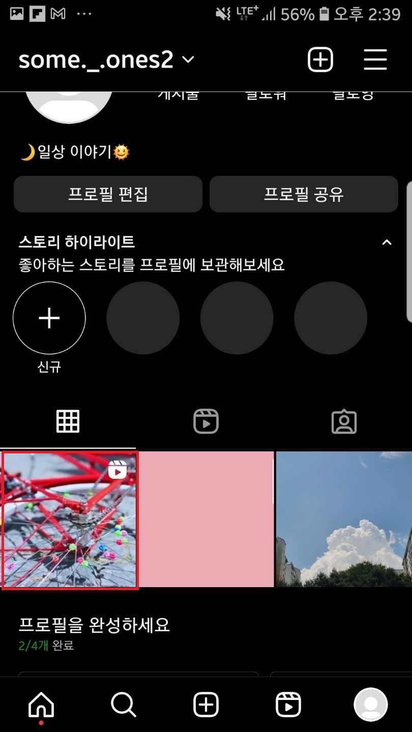 내가 올린 릴스 중 저장할 릴스를 선택해주고 게시물 상단 점 세개를 눌러주세요.