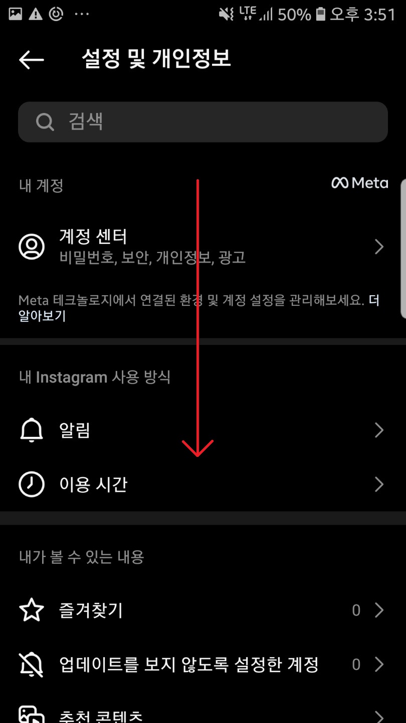 피드 우측 상단 선 세개▶설정 및 개인정보