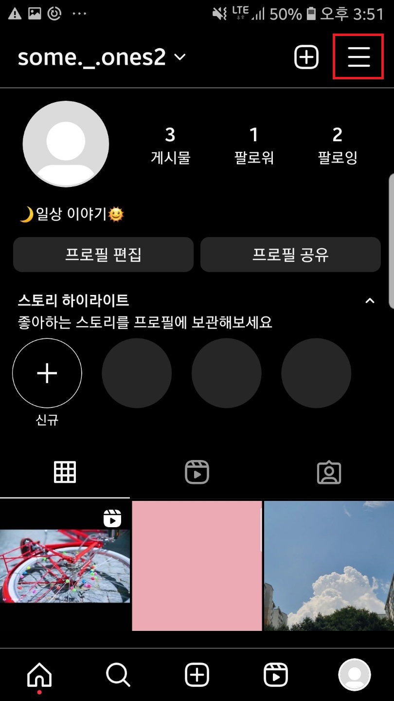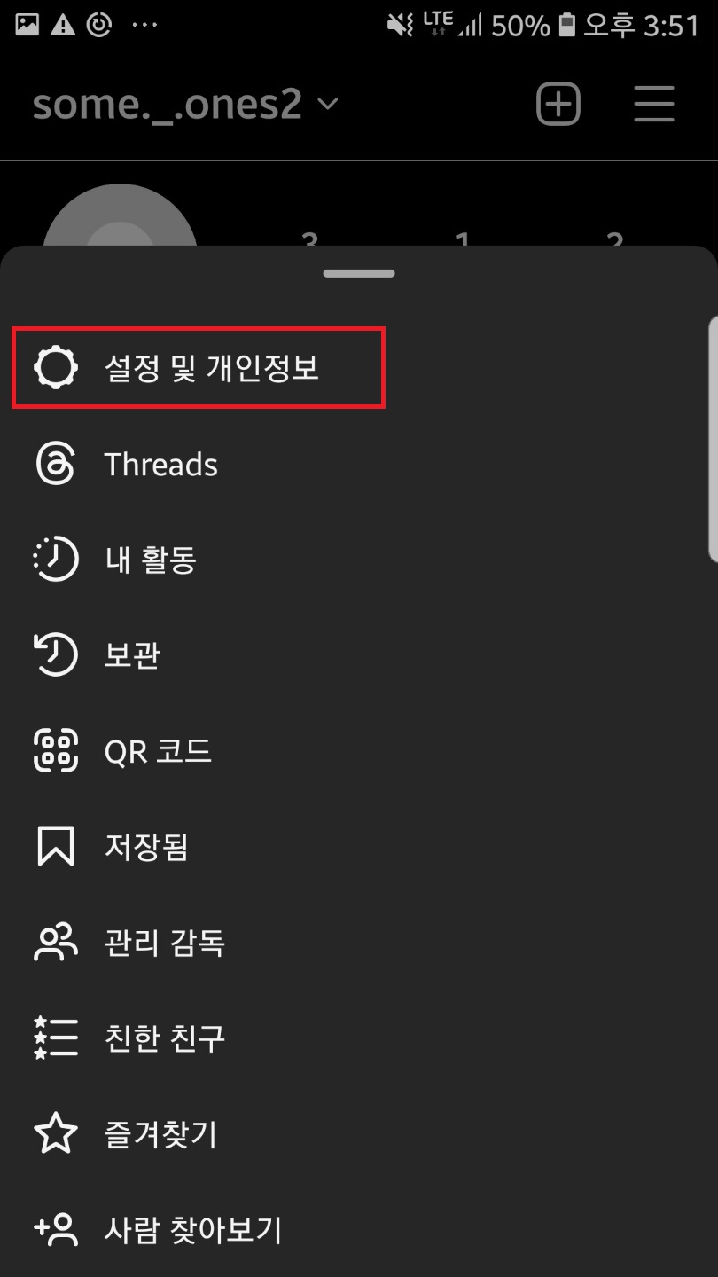 내 피드에서 우측 상단 선 세개를 클릭해주시고 설정 및 개인정보에 들어가주세요!