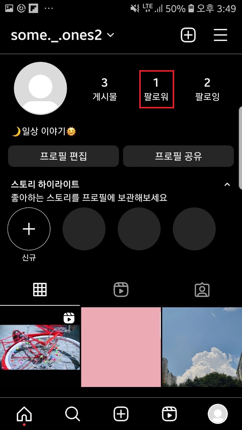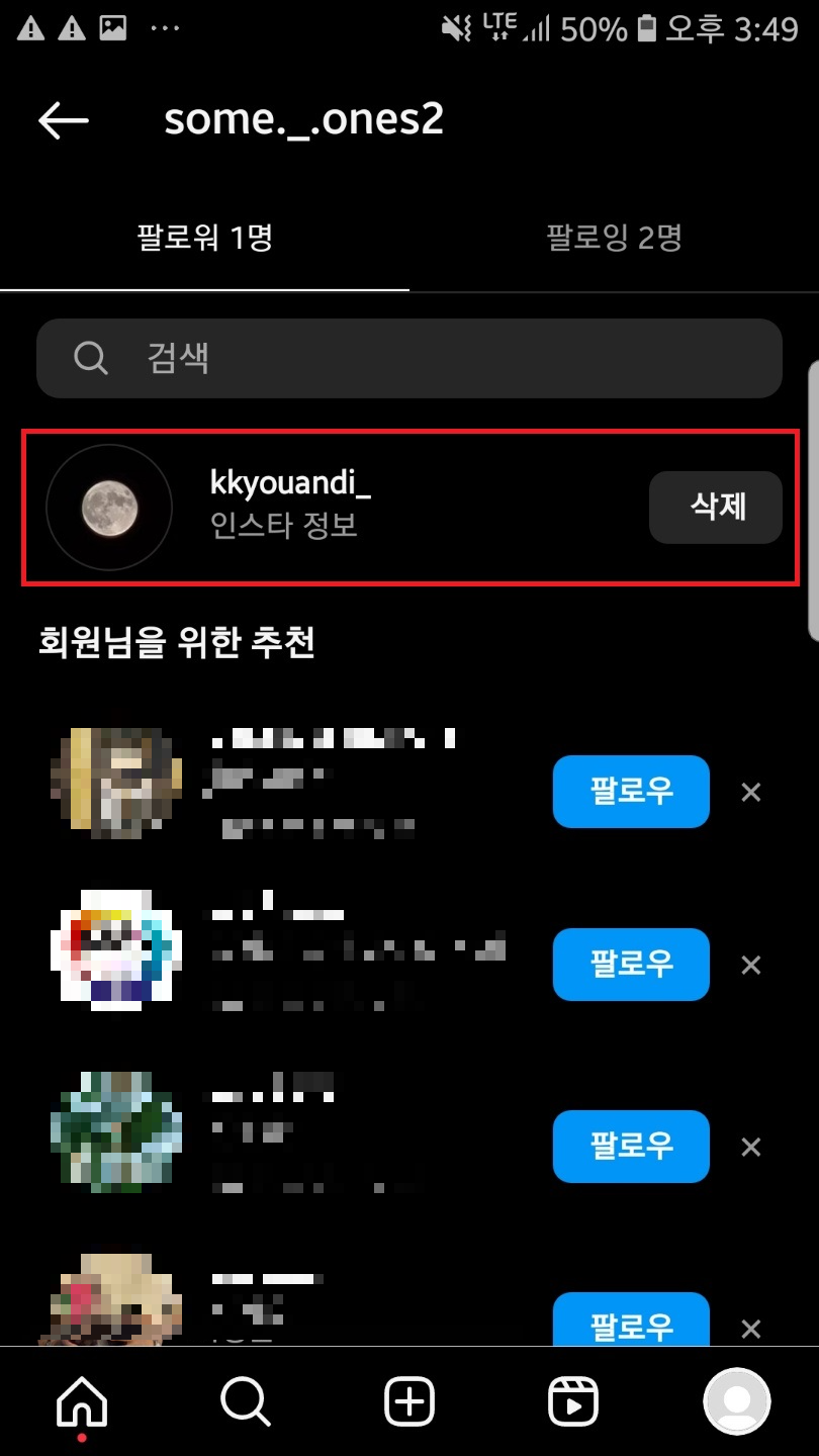 팔로워가 적기 때문에 팔로워 목록에서 찾을거예요. 팔로워를 클릭하고, 제한할 계정을 찾아 클릭해주세요.