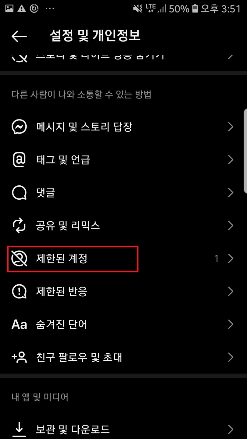 차단을 하지 않아도 내가 제한하고 싶은 계정에게서 어느정도 보호를 해주어요! 특히 내가 제한한 것을 상대방은 모르기 때문에 더 좋은 것 같아요~