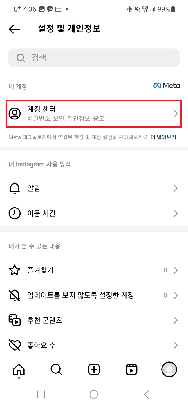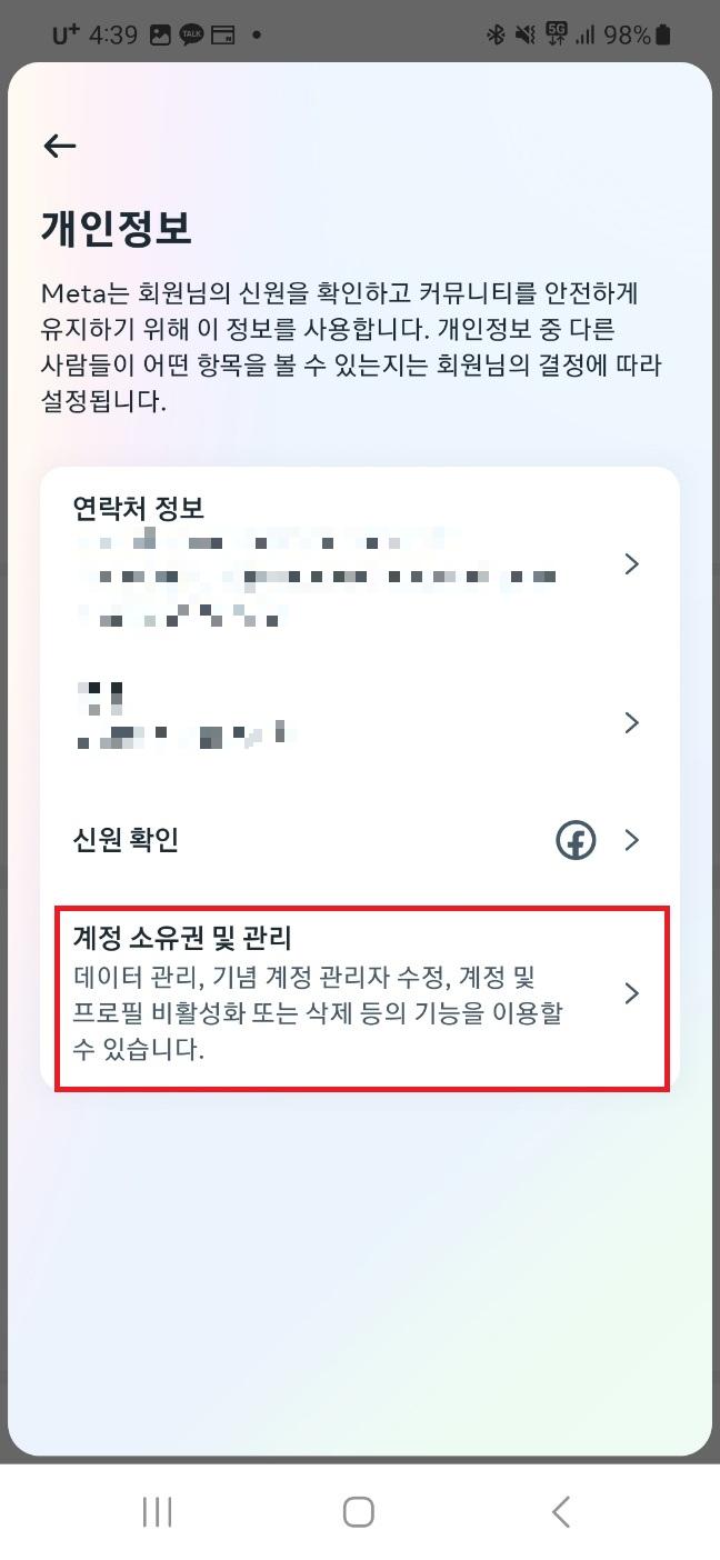 계정 센터▶개인정보