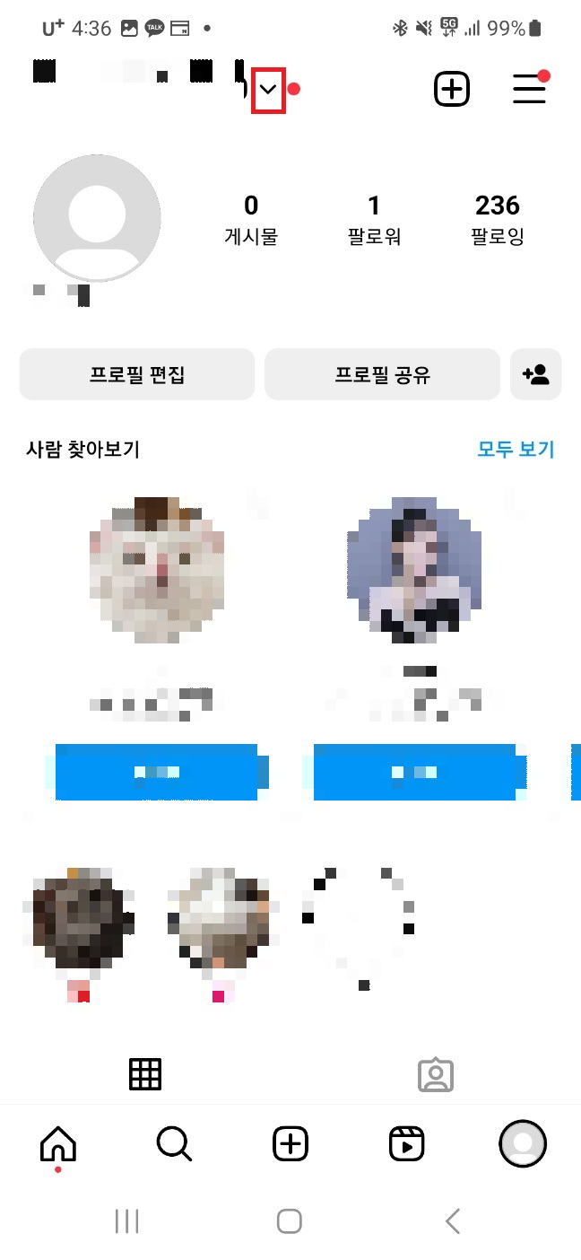 인스타 실행▶내 피드