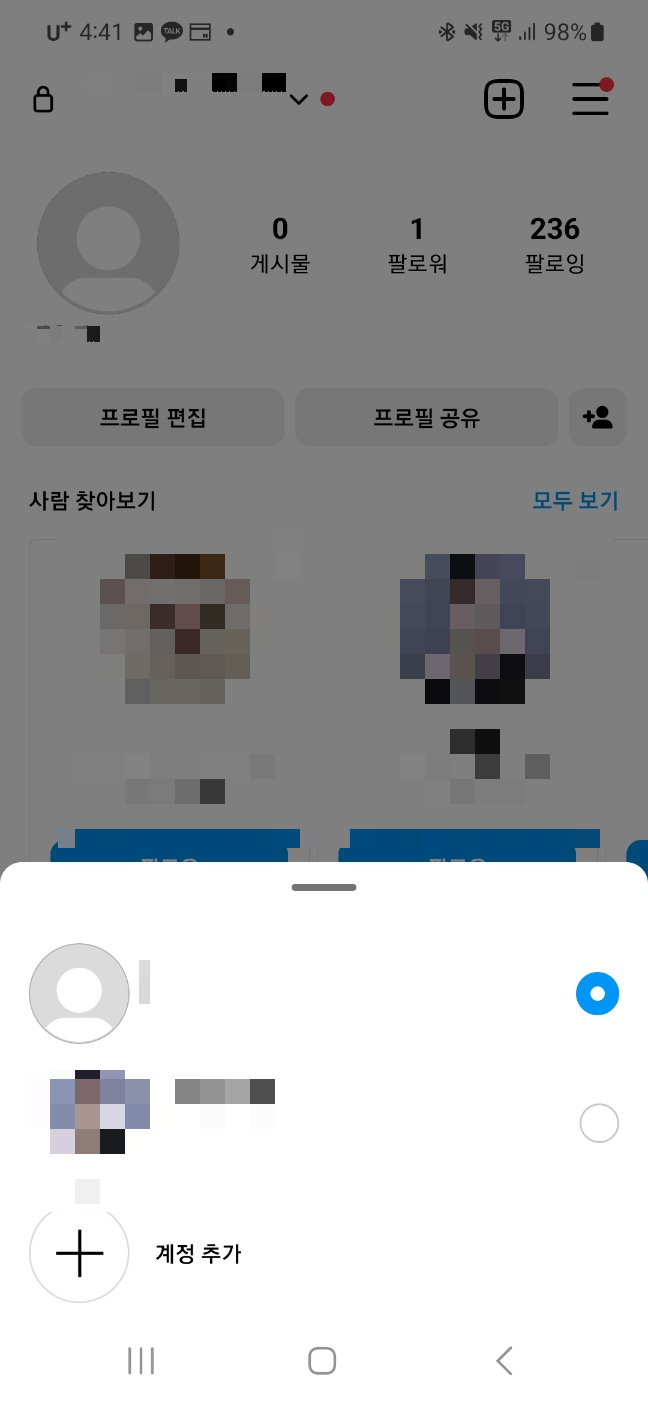 트위터 부계정이나 카톡 부계정 만들기처럼 다른 어플에서도 부계정을 많이 사용하지만 인스타 부계정 만들기는 상당히 쉬워서인지, 인스타 부계정 찾기와 같은 부계정에 대한 질문들이 유독 많은 것 같아요.
