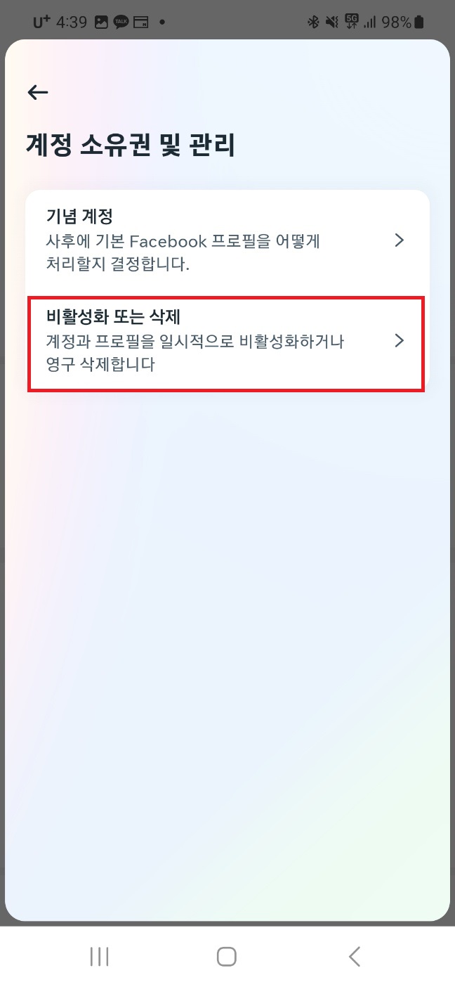 계정 센터▶삭제예정 계정