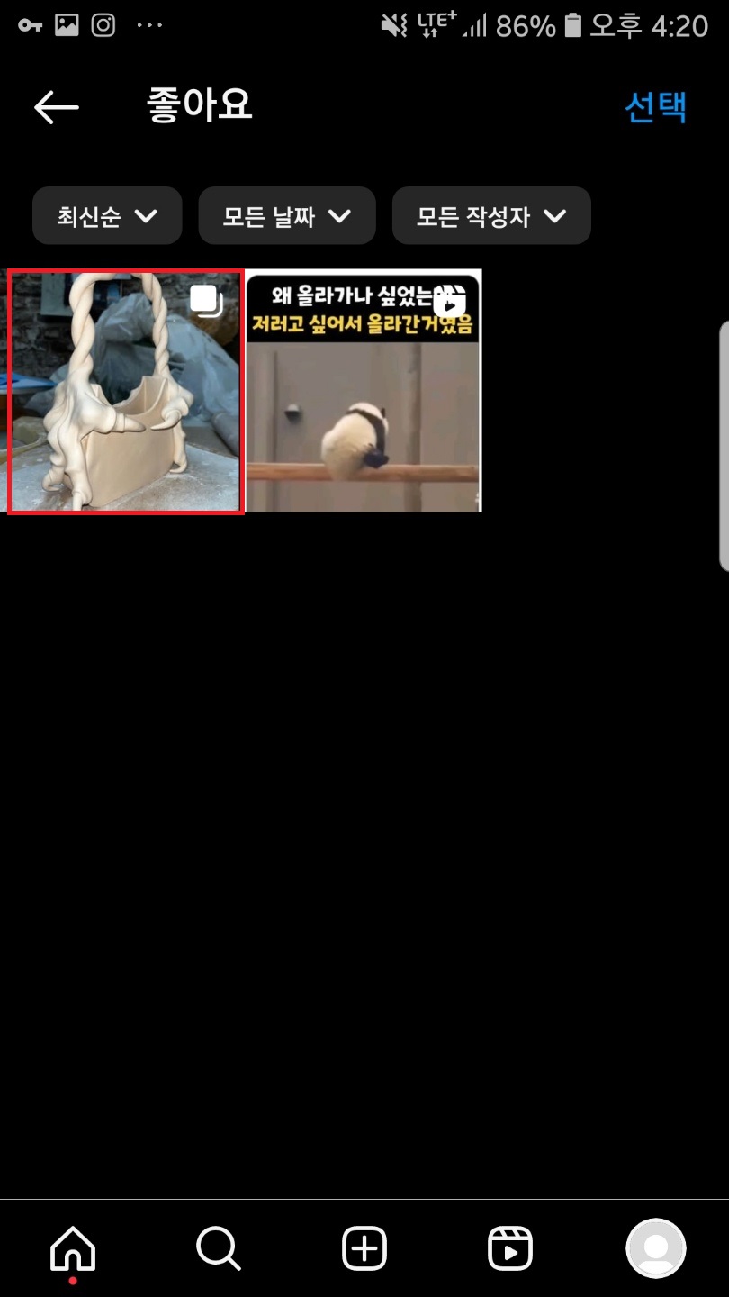 좋아요 누른 게시물 찾기 ▶하트 클릭