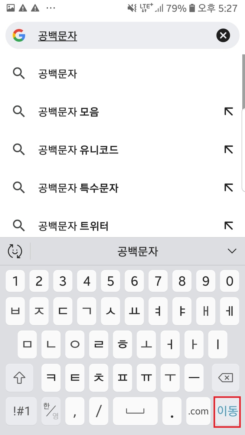 제목 칸 길게 누르기 ▶ 클립보드 ▶ 공백