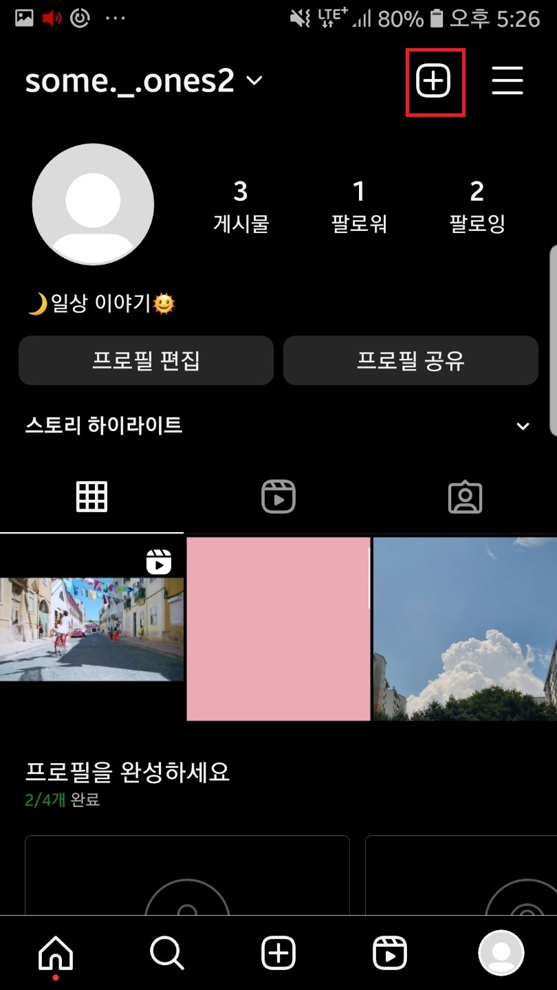 인스타를 실행하신 후 우측 하단 프로필을 클릭하여 내 피드로 들어가주세요.