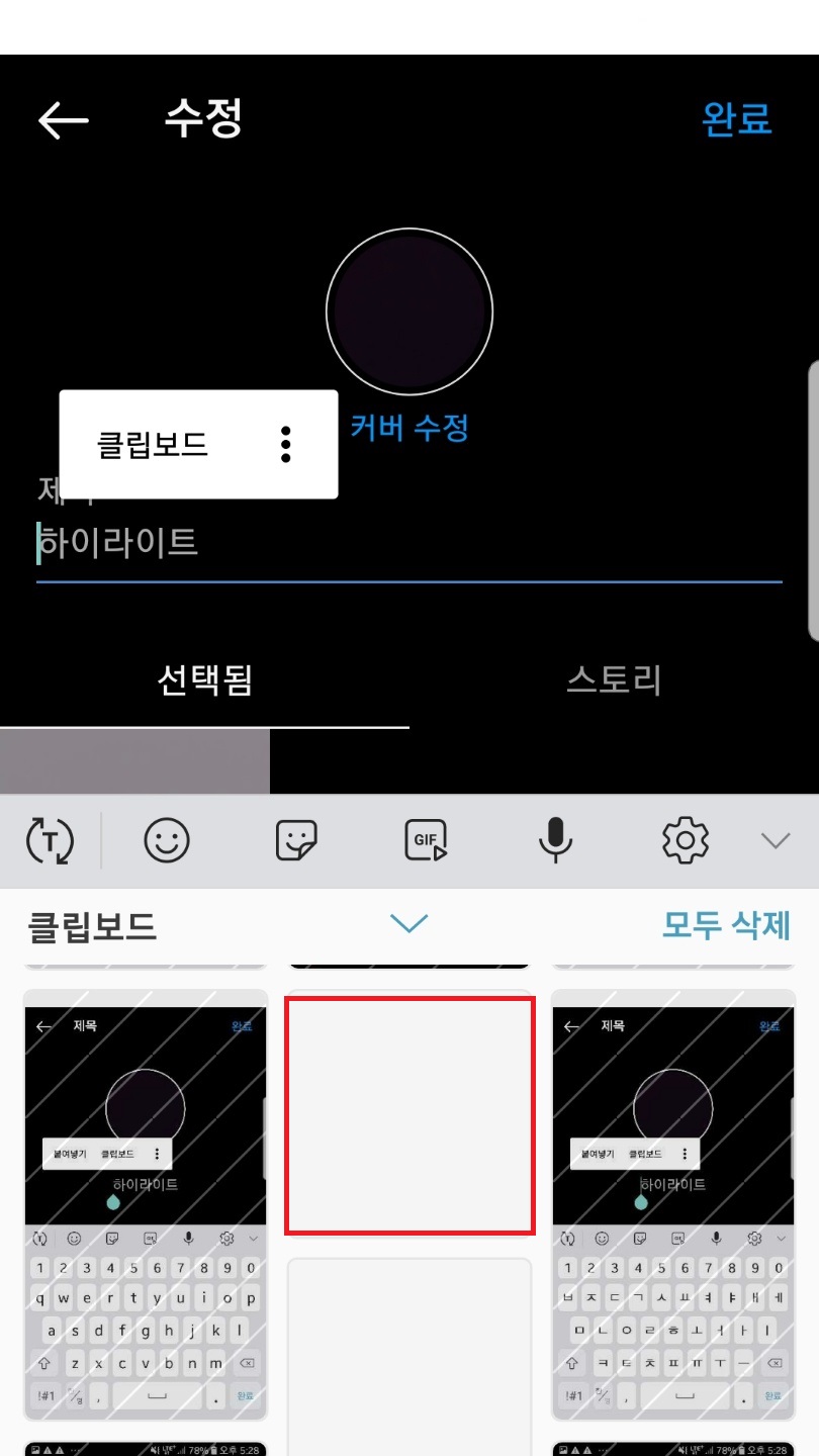 인스타 스토리 하이라이트 제목 공백으로 설정하기