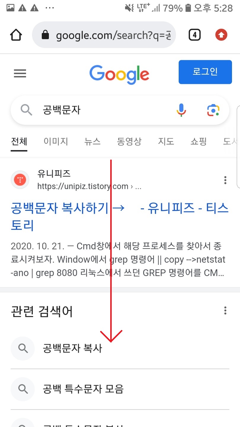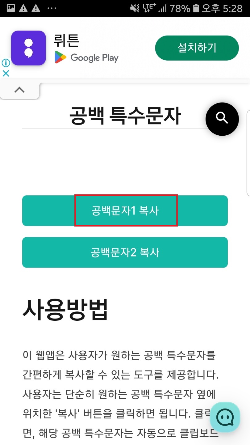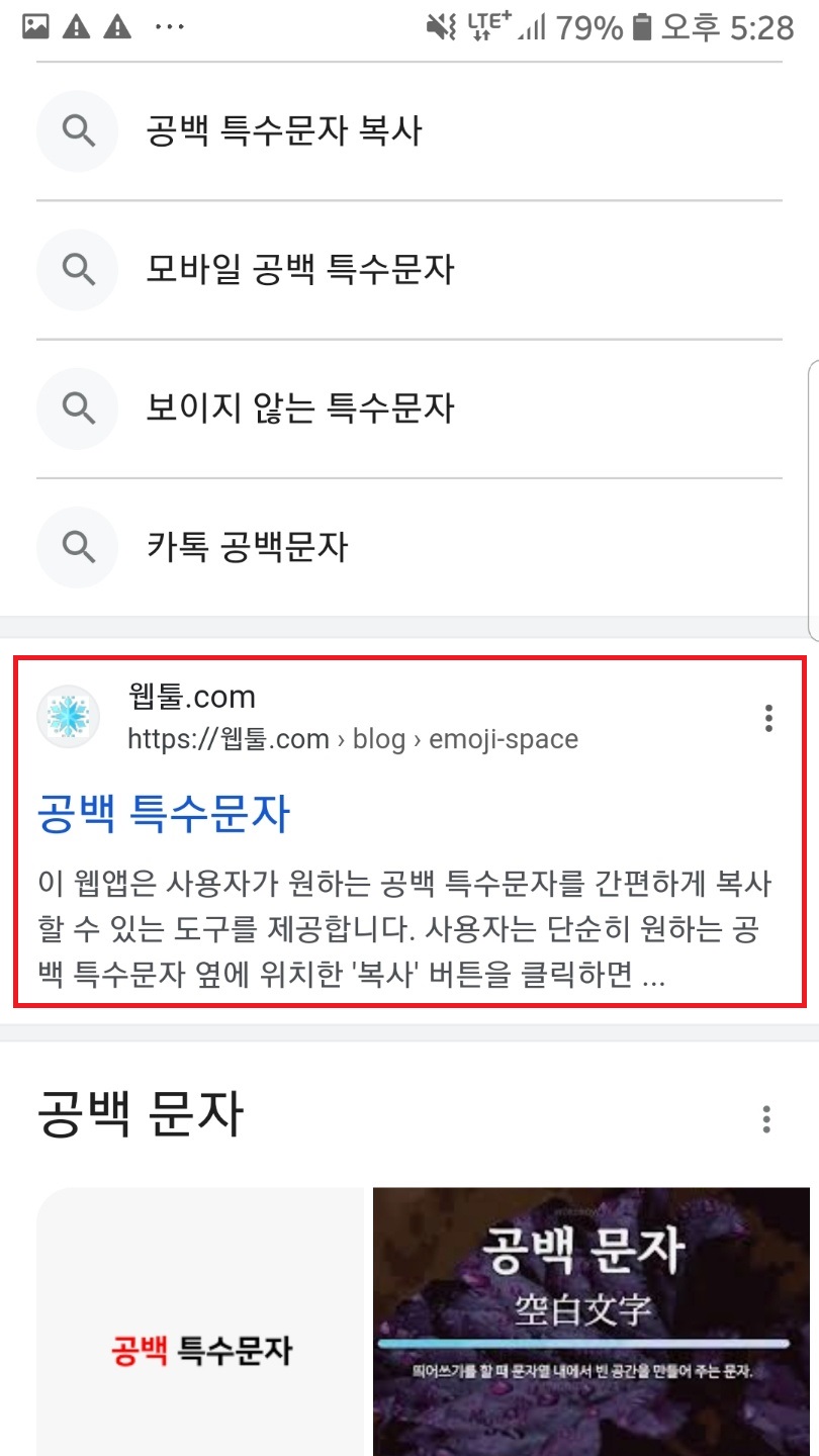 공백문자를 검색하시고 키보드에서 이동을 눌러주신 후 아래로 스크롤하여 웹툴.com에 접속해주세요!