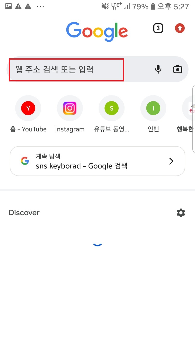 크롬을 실행한 후 검색창을 클릭해주세요.