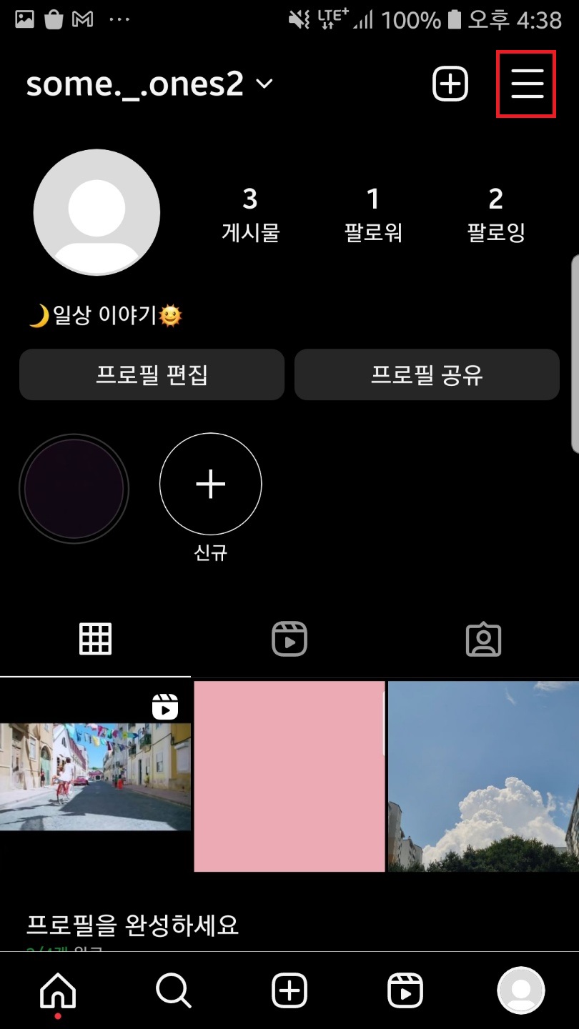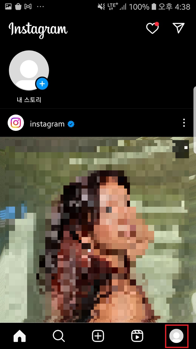 인스타 어플을 실행해주시고 우측 하단 프로필을 클릭하여 내 피드로 들어가주세요.