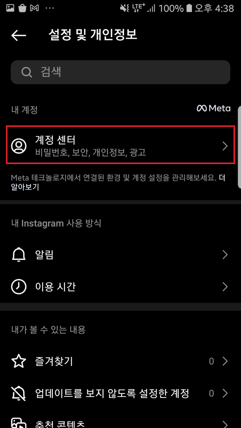 계정 센터에 들어가서 아래로 스크롤하여 개인정보에 들어가주세요.