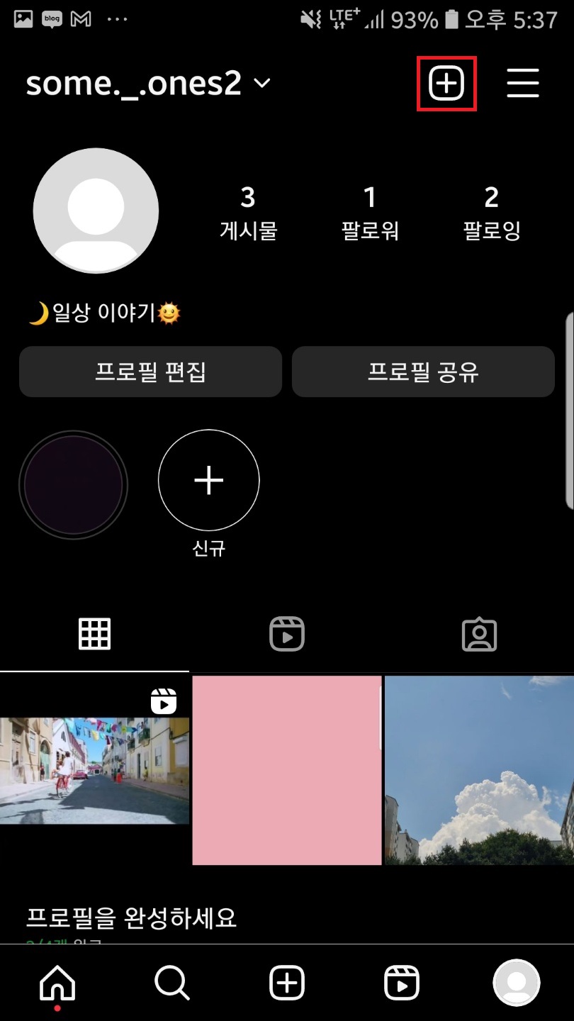 상단 + 버튼을 눌러주시고 스토리 하이라이트에 들어가주세요.