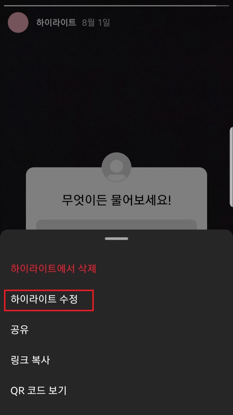 인스타그램 스토리 하이라이트 커버 바꾸기
