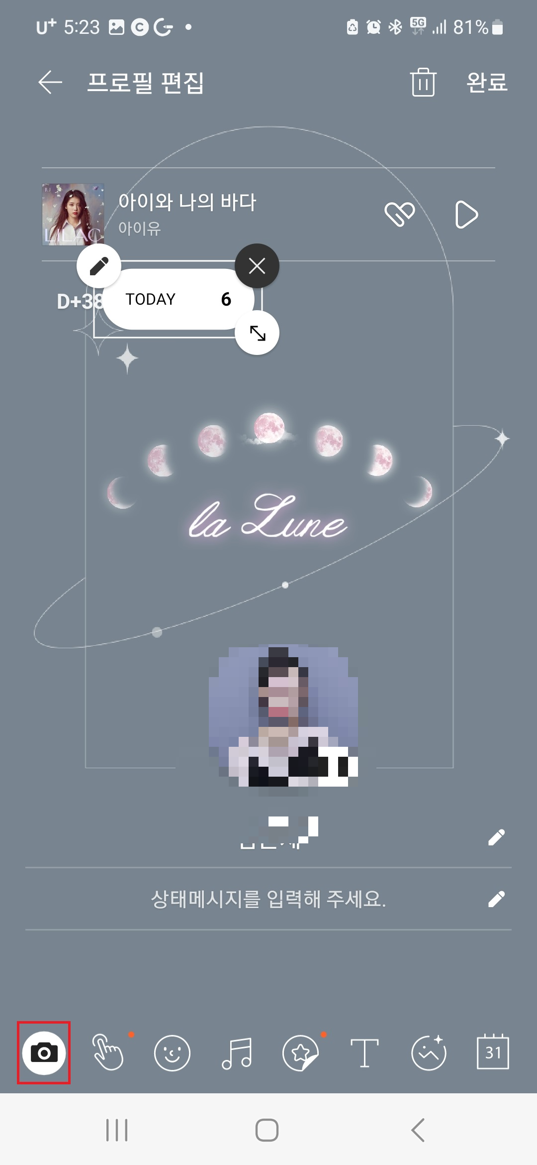 프로필 편집을 눌러주신 후 맨 왼쪽 카메라 아이콘을 클릭해주세요.
