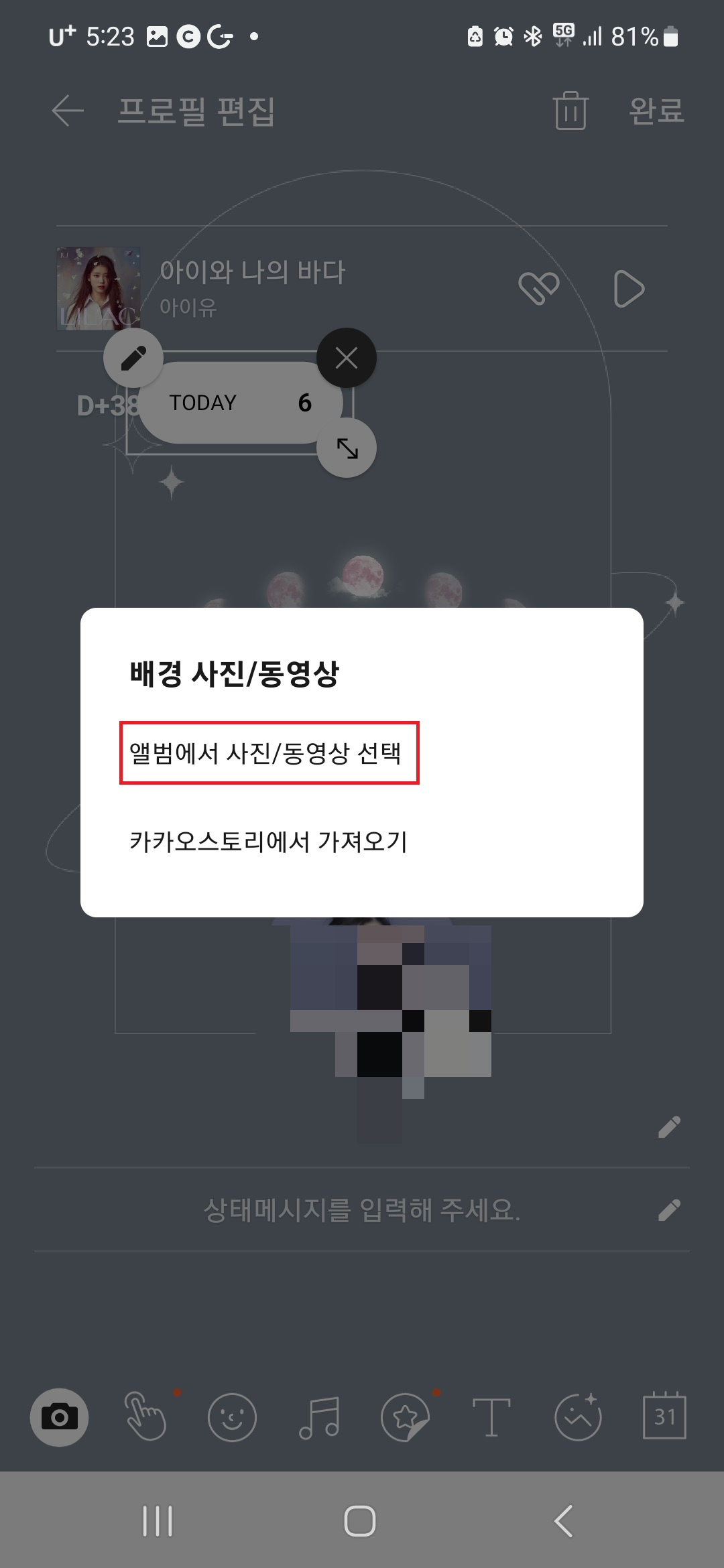 배경사진을 설정해도 프로필 사진이 표시되는 부분은 가릴 수 있으니 이 점 참고하여 설정하세요!