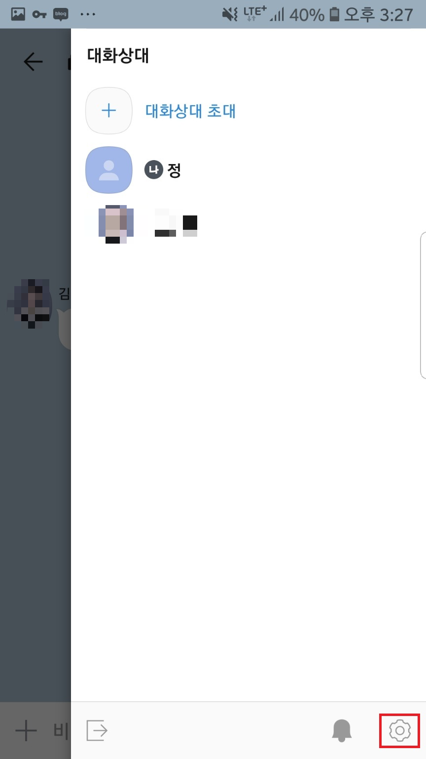 상단 선 세개 ▶ 하단 톱니바퀴 ▶현재 채팅방 입력창 잠금