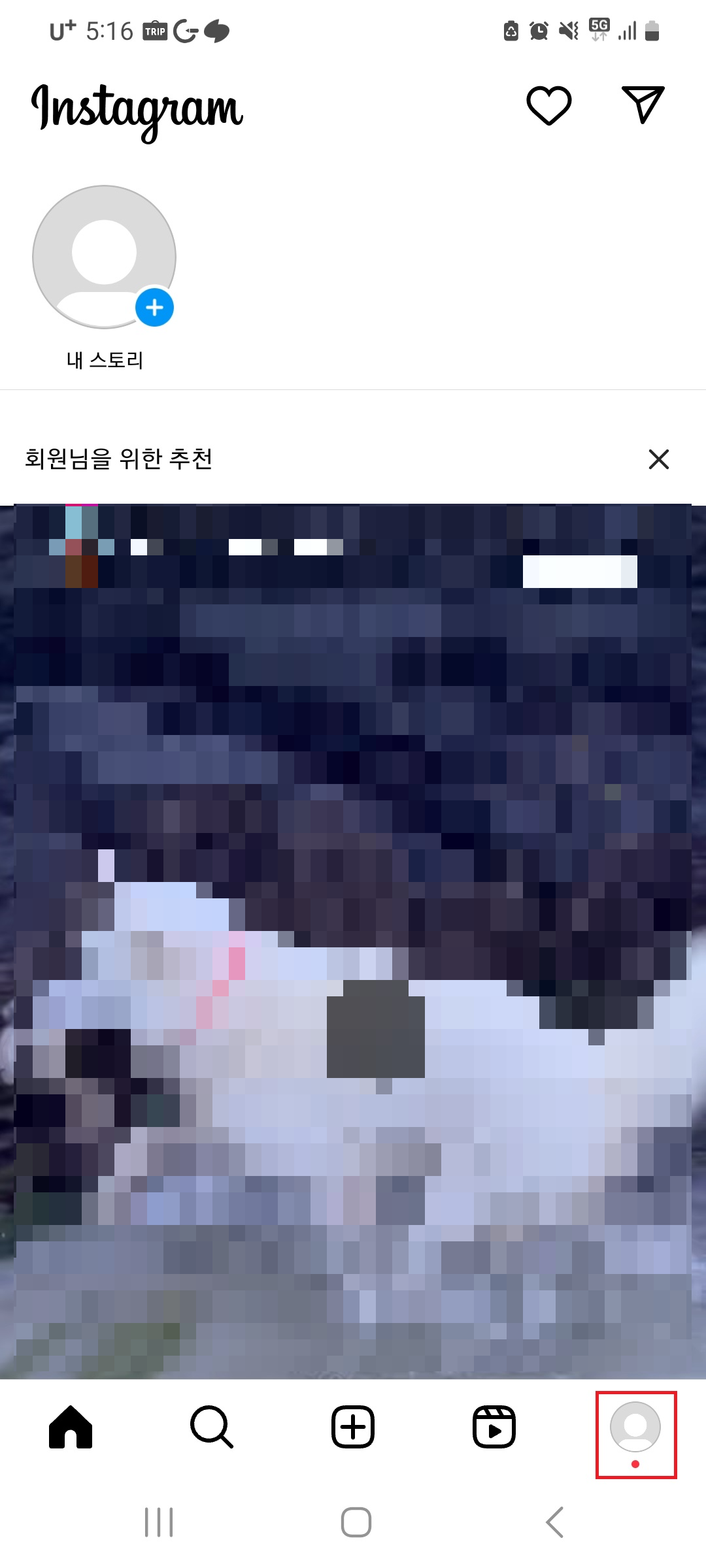 인스타 어플을 실행한 후 우측 하단 프로필을 눌러 내 피드로 들어가주세요!