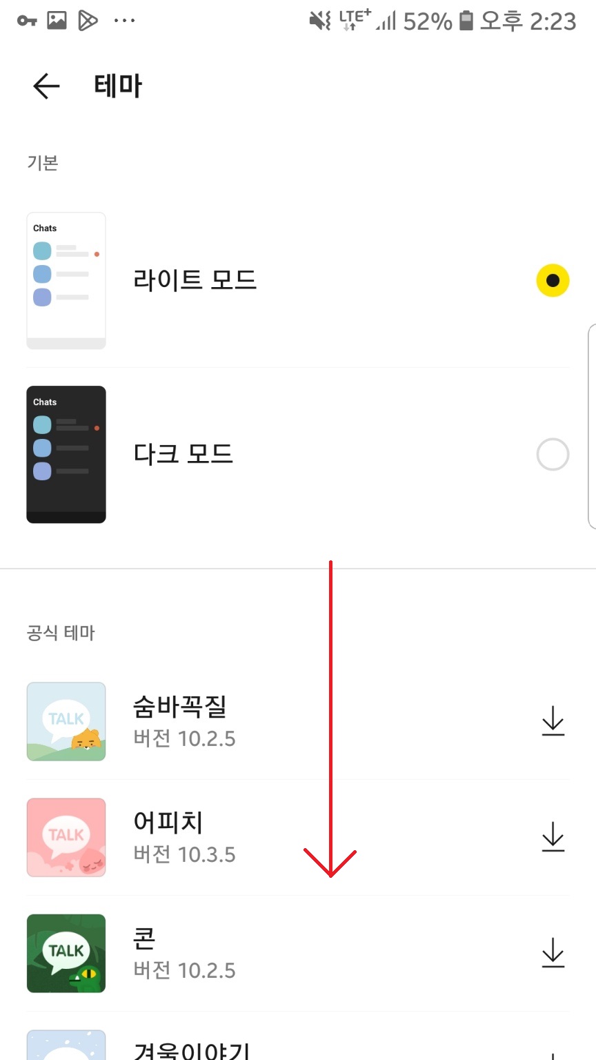 구글 플레이 스토어에 '카톡 테마'를 검색하면 공식 테마 말고도 더 많은 카톡 테마를 다운받을 수 있어요!