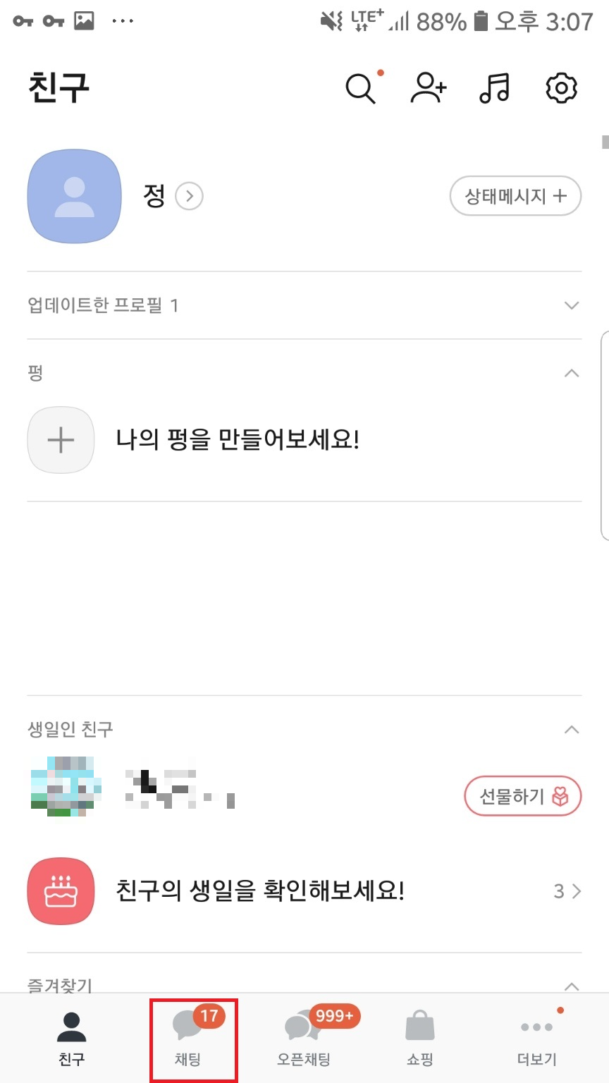 카톡을 실행해주시고 채팅 탭으로 들어가주세요,