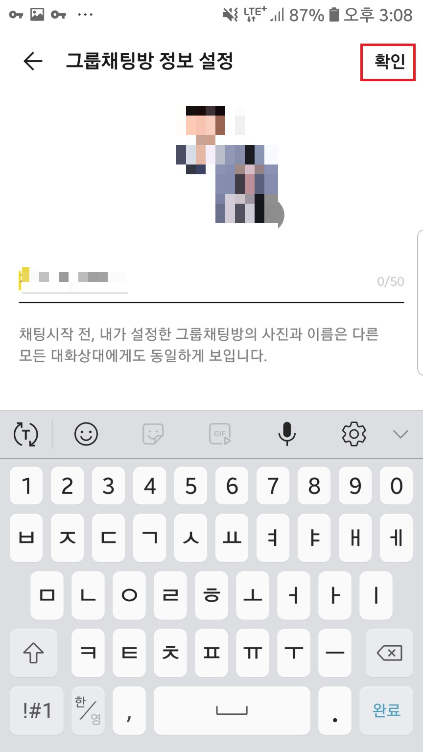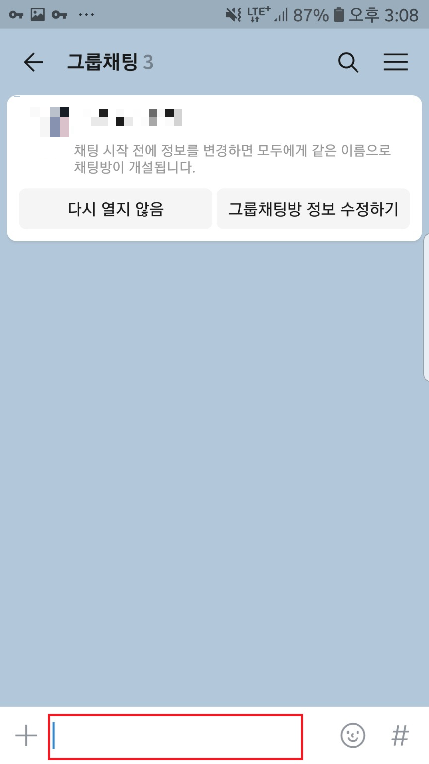 우측 상단 확인을 눌러주시면 톡방이 만들어지는데요. 여기서 나가지 마시고 입력창을 눌러주세요.